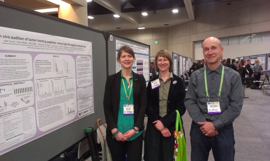 Pille Säälik, Tambet Teesalu, and Kadri Toome participated at the 105th Annual Meeting of the American Association for Cancer Research on April 5-9, 2014 in San Diego, California, USA. The AACR Annual Meeting is the premier cancer research event where the latest and most exciting basic, translational, and clinical discoveries are presented each year. The theme for the AACR Annual Meeting 2014 was, “Harnessing Breakthroughs – Targeting Cures” and it drew over 18,000 researchers, patient advocates, and other professionals in the cancer field from around the world.