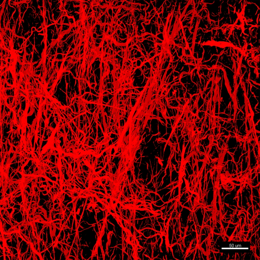 Detection in wavelength of 800nm with Spectra Physics MaiTai Deep See Ti:Sapphire laser. Multiphoton microscope Olympus FV1200MPE; objective XLPLN 25xW-MP (NA 1.05).